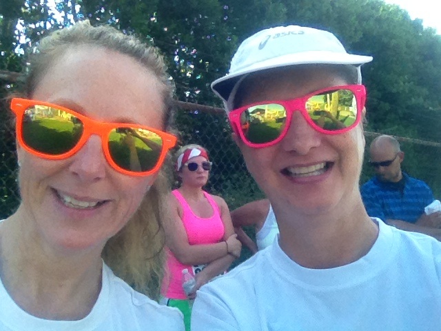 When Erika and I arrived at the Fairgrounds, it was already hot. It’s June in Nashville, after all. And there was no shade. While Erika was finding a parking spot, we quickly assessed the crowd. People were wearing fairy-wings with their white tutus. One guy (who might want to install a full-length mirror) wore a white full-length skin-tight bodysuit. Everyone but us wore official run merchandise – tutus, t-shirts, head bands, brightly colored knee socks, and really cute white tanks. I had to force myself not to look at the cute white tanks so I wouldn’t buy one due to my lack of willpower when it comes to cute running clothes.